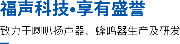 泰州福聲電子科技有限公司主要生產(chǎn)聲學器件,有著豐富的研發(fā)生產(chǎn)銷售經(jīng)驗, 我們主要生產(chǎn)喇叭、揚聲器、壓電式蜂鳴器、電磁式蜂鳴器、貼片式蜂鳴器等電聲元器件。
